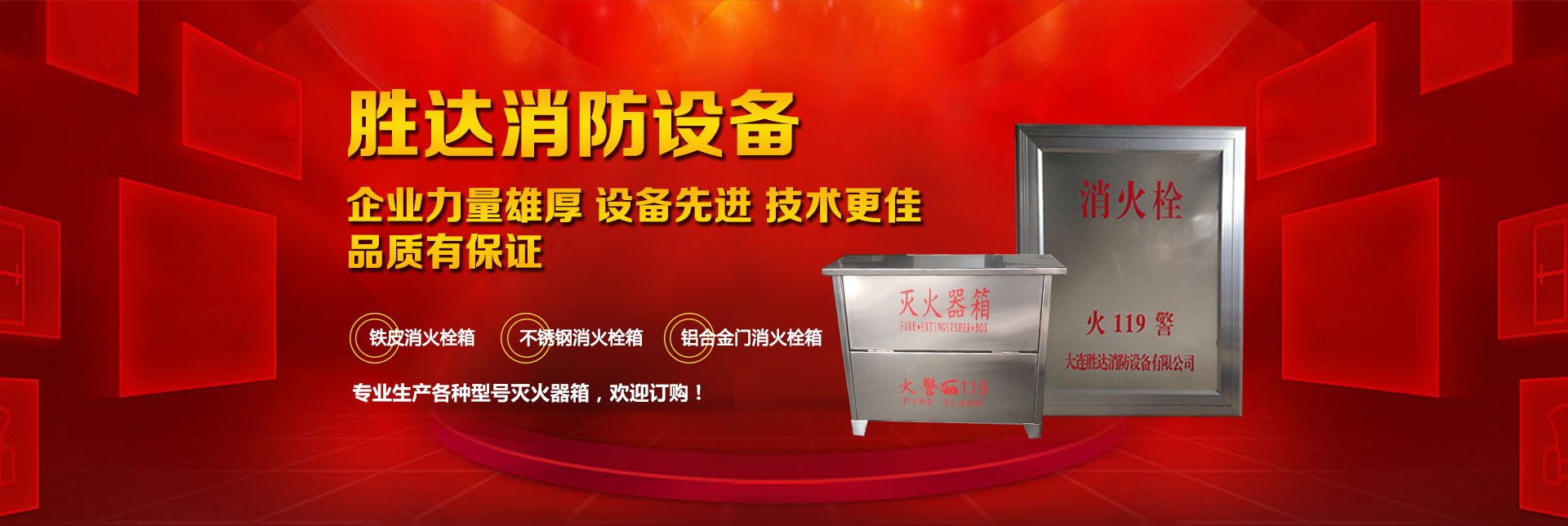 大連勝達(dá)消防設(shè)備有限公司本公司企業(yè)力量雄厚、設(shè)備先進(jìn),生產(chǎn)的所有消防產(chǎn)品均符合國家GB14561—J標(biāo)準(zhǔn),品質(zhì)有保證。我公司地理位置優(yōu)越,位于大連市甘井子區(qū)西北路847號交通便捷,公司專業(yè)生產(chǎn)各種型號滅火器箱、消火栓箱、鐵皮消火栓箱、不銹鋼消火栓箱、鋁合金門消火栓箱。消火栓箱系列產(chǎn)品,全部按照國家標(biāo)準(zhǔn)和行業(yè)標(biāo)準(zhǔn)進(jìn)行生產(chǎn),并通過國家合格鑒定,得到了國家固定滅火系統(tǒng)和耐火構(gòu)件質(zhì)量監(jiān)督檢驗(yàn)中心的產(chǎn)品認(rèn)證和產(chǎn)品形式報(bào)告書。我們的消火栓箱系列產(chǎn)品具有外形美觀、結(jié)構(gòu)先進(jìn)、開啟靈活、使用可靠、消火應(yīng)急燈具標(biāo)志清晰、光色好、功耗低、使用壽命長、安裝使用簡便,可廣泛應(yīng)用于高層建筑和工業(yè)等一些公關(guān)場所使用。